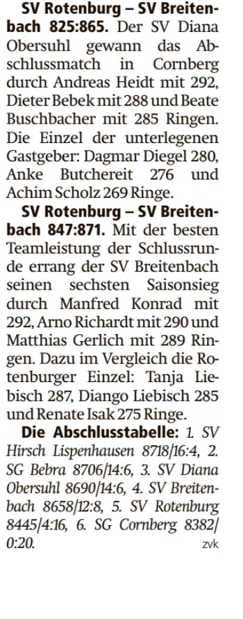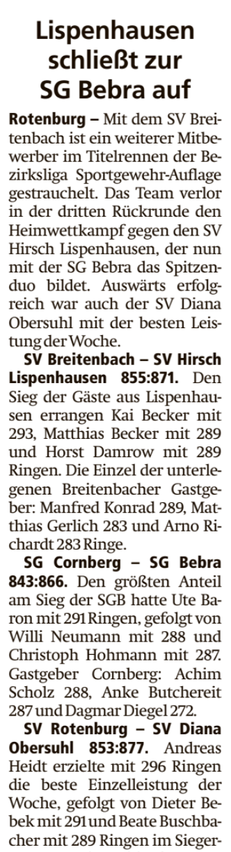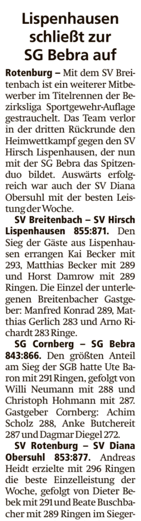 Die Nachwuchswerbung gestaltet sich für Schützenvereine immer schwieriger. Ist es bei anderen Sportarten so, dass bereits die Kleinsten schon mitmachen dürfen, so dürfen Kinder erst ab zwölf Jahren gemäß den gesetzlichen Bestimmungen mit dem Luftgewehr oder der Luftpistole schießen. Eine Alternative ohne Mindestalter bietet der Schützenverein 1926 Breitenbach mit dem Bogenschießen bereits seit langer Zeit erfolgreich an. Um auch in den Kugeldisziplinen Nachwuchs gewinnen zu können, wurde bereits im vergangenen Herbst die Beschaffung einer Lichtgewehranlage in die Wege geleitet. Hierbei wurde der Verein großzügig durch die Sparkasse Hersfeld-Rotenburg und Harald und Elfriede Döttger von der Vereinsgaststätte Breitenbacher Hof unterstützt. Durch weitere private Spenden und die Förderung durch den Landessportbund Hessen konnte der Anschaffungspreis von rund zweitausend Euro durch den Verein bezahlt werden. Seitdem können auch Kinder unter zwölf Jahren dem Schießsport mit einem luftgewehrgleichen Lichtgewehr mit elektronischer Trefferanzeige nachgehen ohne gegen gesetzliche Vorschriften zu verstoßen. Durch diese Anschaffung macht der gesamte Verein einen großen Schritt zur Fortsetzung des Schießsports auch in der Zukunft.